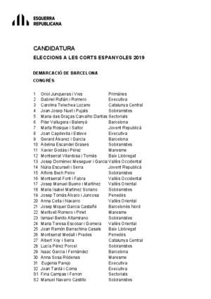 Esquerra Republicana ha ratificat a través del Consell Nacional del partit les llistes per les eleccions espanyoles del proper 10 de novembre, en què els republicans tornaran a estar encapçalats per Oriol Junqueras, Gabriel Rufián i Carolina Telechea al Congrés i Raül Romeva, al Senat. Només uns dies després que Junqueras i Romeva es mostressin disposats a tornar a encapçalar les llistes, els republicans han ratificat l’aposta.