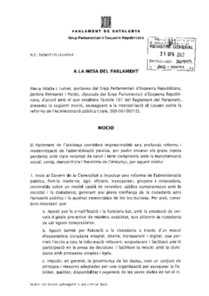 Per altra banda, Esquerra Republicana també vol que el Parlament insti el Govern de Catalunya a impulsar una reforma de l'administració pública, per tal de fer-la més moderna, propera, descentralitzada.